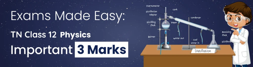 3 mark questions require precise and accurate answers in a well-structured form. This blog will guide you on how to answer 3-mark questions perfectly in the TN Class 12 Physics exam. To ease your exam preparation, a 3-mark question booklet(chapterwise) is attached for your revision purposes.